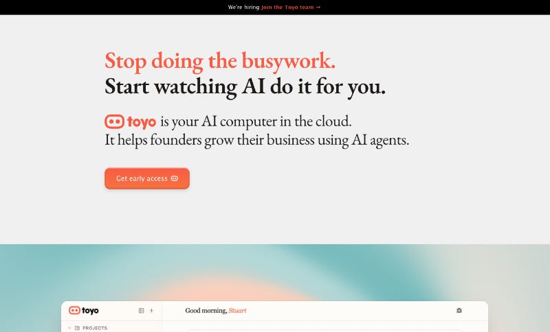 Toyo is building an AI “computer in the cloud” where autonomous agents handle business workflows like research, outreach, and content creation.